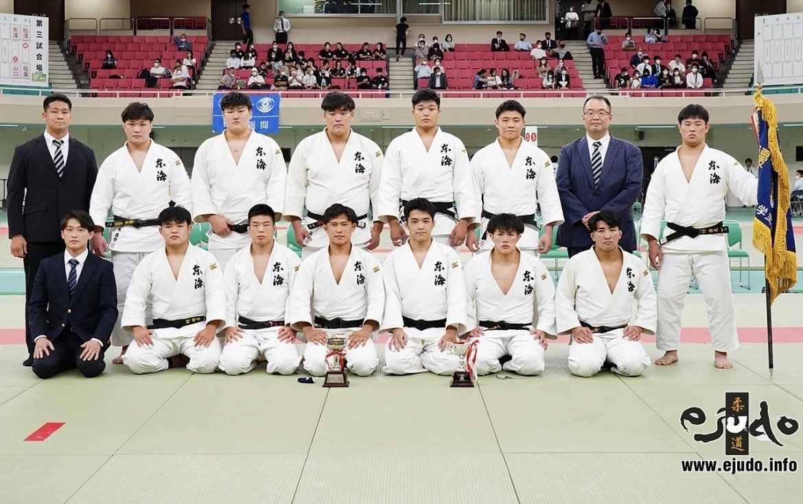大学柔道部での日本一。前列左から4番目が秋本さん。